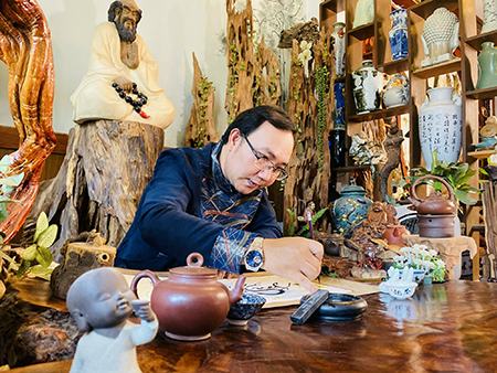 Nhà thư pháp Nguyễn Hiếu Tín đang thực hiện bộ “Ngũ hổ thư du xuân”
