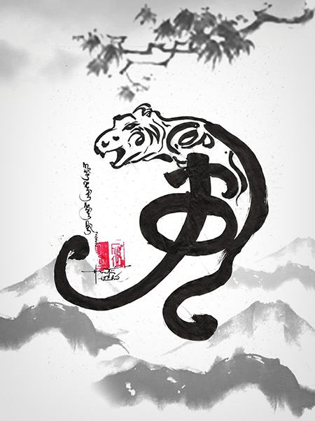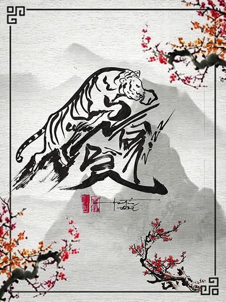 – Hổ vui xuân: Một chú hổ đang đứng thong dong, thư thả giữa đất trời vào xuân. Anh đã sáng tạo chữ “Hổ – Nhâm Dần” kết hợp lại tạo thành những hoa văn trên thân hổ, rất hợp lý và duyên dáng. Có thể nói đây là một bức tranh chữ về hổ khá đặc sắc và đẹp mắt. Chú hổ hiện lên với tâm hồn thư thái, an lành trong một màu nền như như cảnh thần tiên, rất nhẹ nhàng nhưng không kém phần sâu lắng. Đây cũng là thông điệp tác giả muốn gửi lời chúc đến mọi người có một tâm an, thiện lành trong mùa xuân mới.