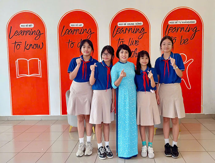 “Tôi tập trung bồi dưỡng giáo viên tiên phong, có năng lực và tinh thần đổi mới để họ làm hạt nhân, lan tỏa thay đổi. Xây dựng các nhóm chuyên môn, tổ chức sinh hoạt chuyên đề theo hướng nghiên cứu bài học, tạo cơ hội cho giáo viên cùng nhau học hỏi, chia sẻ và giải quyết vấn đề thực tiễn. Phân quyền và trao quyền tự chủ cho giáo viên và các tổ nhóm chuyên môn trong việc thiết kế hoạt động và chương trình dạy học” – cô Hằng chia sẻ.