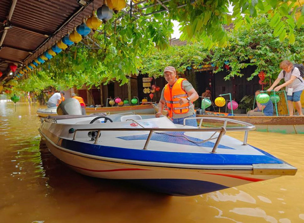 Anh Trung bên chiếc ca nô cứu hộ vùng lũ