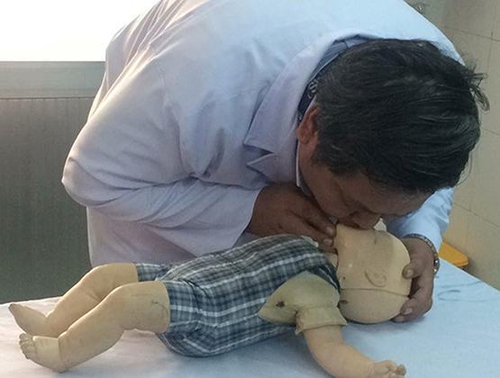 | BS Phương thực hành sơ cứu hô hấp nhân tạo cho trẻ (ảnh tư liệu BV cung cấp) |