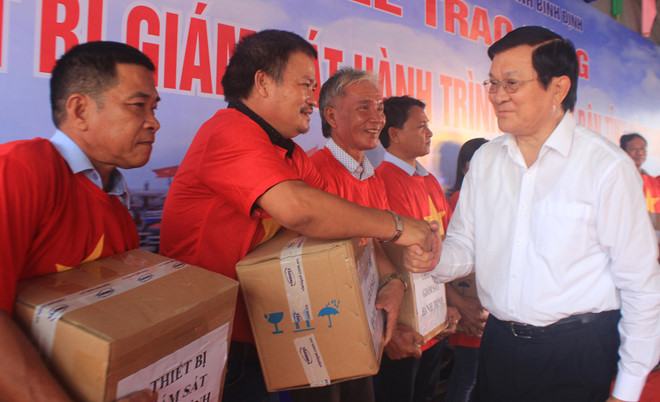 Nguyên Chủ tịch nước Trương Tấn Sang vận động các doanh nghiệp, nhà tài trợ hỗ trợ tổng cộng gần 30 tỉ đồng để mua thiết bị giám sát hành trình tàu cá tặng cho ngư dân tỉnh Bình Định.