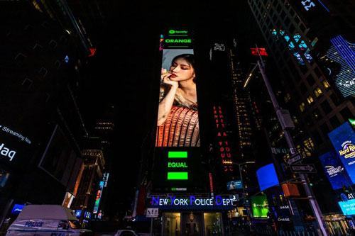 Ca sĩ Orange xuất hiện trên bảng quảng cáo ở Quảng trường Thời đại (Mỹ). Ảnh: Spotify