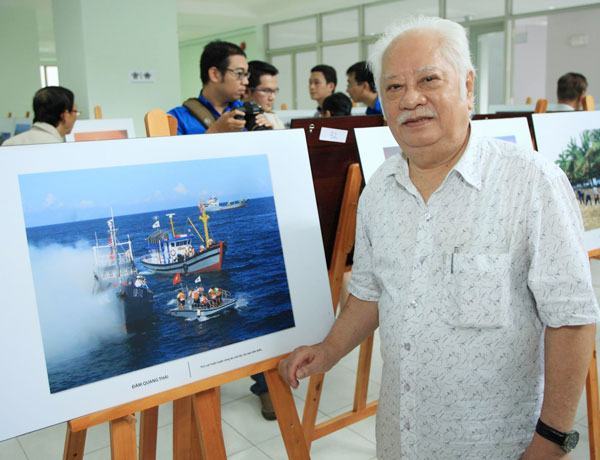 Nhạc sĩ Ca Lê Thuần tại triển lãm Thiêng liêng biển đảo Việt Nam. Ảnh: ĐINH KHẮC DŨNG