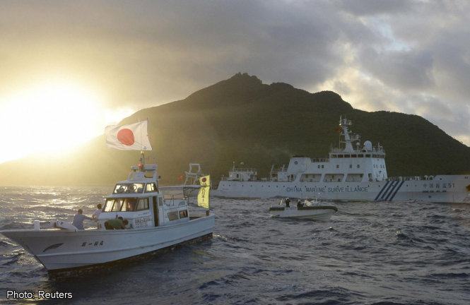 Tàu Trung Quốc và tàu Nhật đối đầu ở gần quần đảo Senkaku/Điếu Ngư – Ảnh: Reuters