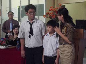 (GD TP.HCM): – Ngày 17-1, chương trình hướng nghiệp “Đúng ngành nghề – sáng tương lai” do Báo Giáo Dục TP.HCM tổ chức tại Trường THCS-THPT Hồng Hà (cơ sở 1) đã tuyên dương hai học sinh (HS) làm việc tốt. Do sơ ý, Ban tổ chức đã đánh rơi một chiếc điện thoại iPhone, hai em HS là Đặng Thiện Lộc và Mạch Triệu Tài (cùng học lớp 6A1) đã nhặt được và liên hệ với Ban giám hiệu trường để trả lại. Được biết, giáo dục đạo đức, nhân cách cho HS luôn được nhà trường chú trọng, đặt lên hàng đầu. Thông qua các hoạt động ngoài giờ lên lớp, các tiết dạy kỹ năng sống hay chuyến đi từ thiện…, HS Trường THCS-THPT Hồng Hà được giáo dục để hình thành nhân cách trong sáng. Đây là hành động tuy nhỏ nhưng thể hiện tấm lòng tốt đẹp của hai em Thiện Lộc và Triệu Tài nói riêng và HS toàn trường nói chung.