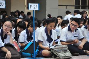 Học sinh TP.HCM tập trung nghe phổ biến nội quy tại kỳ thi tốt nghiệp THPT năm 2014. Ảnh: T.L