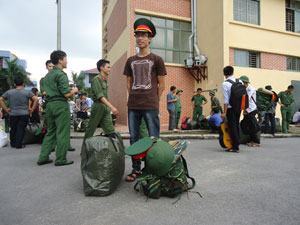 Các tân học viên chuẩn bị làm thủ tục nhập học tại Học viện Kỹ thuật Quân sự. Ảnh: I.T |