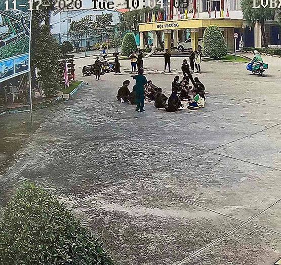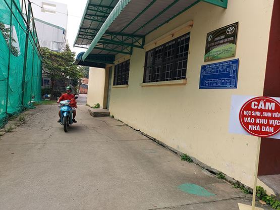 Mặc dù HS-SV đang học giáo dục an ninh quốc phòng nhưng xe giao hàng vẫn vào khu hộ dân cư một cách ngang nhiên như đang chạy ngoài đường
