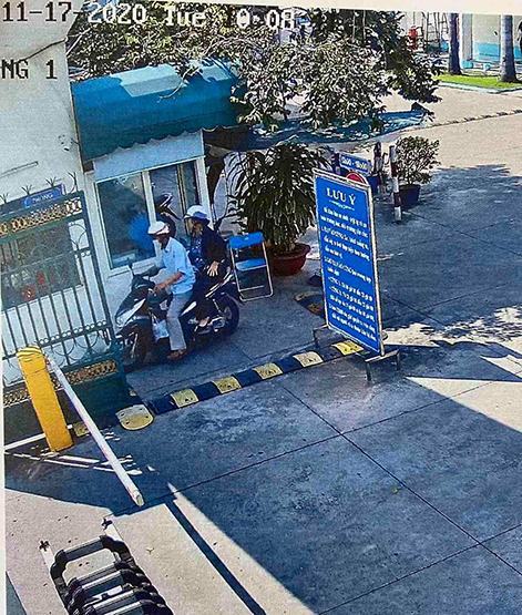 Hộ dân đang chạy xe từ cổng trường ra đường Nguyễn Văn Luông