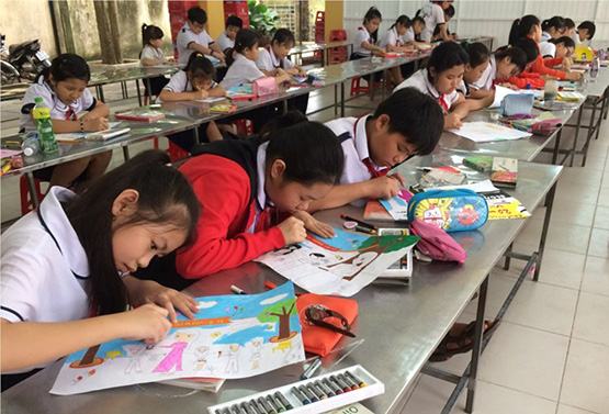 HS Trường Tiểu học Mỹ Hòa say mê tham gia cuộc thi vẽ chào mừng ngày 20-11