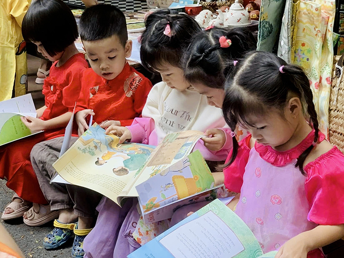 Bên cạnh đó, các em thiếu nhi, học sinh còn được tham quan triển lãm tranh vẽ nghệ thuật, rực rỡ sắc màu chủ đề “Thế giới quanh em”. Tranh được vẽ với nét cọ hồn nhiên, tươi sáng thể hiện ước mơ về thế giới muôn màu do chính tay các em thiếu nhi sáng tác trong các hội thi Nét vẽ xanh 2025. Đối với những em mê đọc sách có thể đến Khu vực trưng bày giới thiệu sách hay nên đọc trong hè dành cho thiếu nhi chủ đề “Biển đảo trong trái tim em”… giới thiệu nhiều tác phẩm hay, nuôi dưỡng tình yêu sách và tình yêu Tổ quốc. Hội sách mini – Không gian kết nối tri thức giới thiệu hàng ngàn đầu sách mới, hay và phù hợp với lứa tuổi thiếu nhi được giới thiệu giúp các em thỏa sức lựa chọn người bạn đồng hành lý tưởng cho kỳ nghỉ hè.