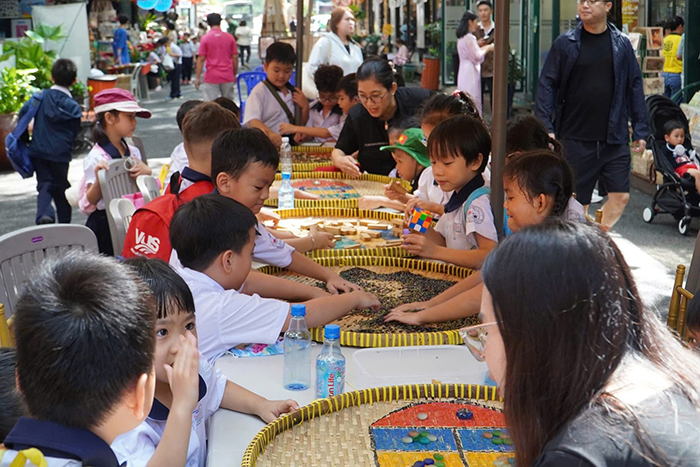 Các sân chơi tương tác sôi động và thú vị, được thiết kế dành riêng cho các em thiếu nhi như: Cuộc thi “Rung chuông vàng gọi biển xanh” chủ đề “Biển đảo trong trái tim em” mang đến một sân chơi trí tuệ sinh động, giúp các em vừa học, vừa chơi, vừa khám phá thêm nhiều kiến thức bổ ích về biển đảo quê hương. Workshop “Khám phá khoa học” trải nghiệm sáng tạo màu sắc với tô màu gỗ, vẽ tranh, sân chơi âm nhạc trải nghiệm nhạc cụ Ukulele, hoạt động rút thăm trúng thưởng… giúp các em thể hiện cá tính và phát triển tư duy nghệ thuật. Workshop “Chạm xanh” với thông điệp nhẹ nhàng mà ý nghĩa. “Chạm xanh” mang đến cho các em nhỏ cơ hội tìm hiểu vai trò của cây xanh trong việc bảo vệ môi trường, đồng thời khơi gợi tình yêu thiên nhiên từ những điều giản dị nhất. Tại đây, các em được lắng nghe những câu chuyện thú vị về cây cối, học cách chăm sóc cây và đặc biệt là tự tay trang trí chậu hoa, trồng những mầm xanh yêu thích để mang về nhà như một món quà nhỏ ý nghĩa.