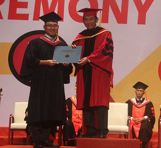 Hiệu trưởng Trường ĐH Quốc tế Hồ Thanh Phong trao bằng tốt nghiệp cho các học viên cao học