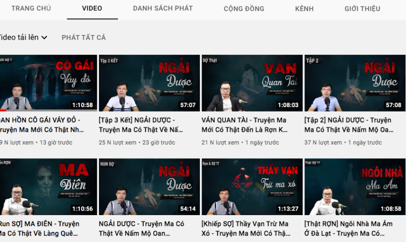 Các kênh truyện tâm linh này thời gian gần đây liên tục đăng tải video mới, có kênh hai video/ngày, thậm chí đặt lịch phát cụ thể để người xem tiện theo dõi. Nội dung kể về các điển tích, chuyện ma dân gian đồn thổi suốt nhiều năm qua, hoặc video kể về các câu chuyện được khẳng định là do khán giả gửi đến. Tuy nhiên, không ai xác định được nội dung này do trí tưởng tượng hay trải nghiệm thực tế, và liệu có khán giả hâm mộ gửi về hay chủ kênh tự tạo để hù dọa người nghe.