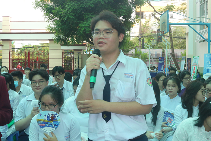 Học sinh Trường THPT Nguyễn Hiền đặt câu hỏi cho chuyên gia tư vấn tại chương trình
