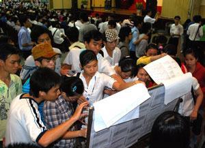 SV Trường ĐH Sư phạm kỹ thuật tìm hiểu thông tin việc làm. Ảnh: Q.Huy |