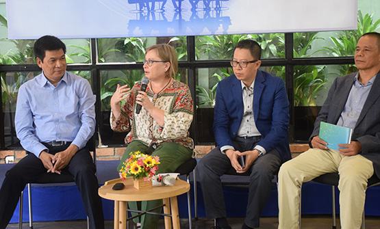 Bà Marianne Ohler và các diễn giả tại chương trình “Đối thoại công nghệ và thị trường” dành cho doanh nghiệp và truyền thông.