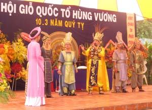 Thầy và trò Trường THPT Hùng Vương tái hiện lịch sử hào hùng thời đại Hùng Vương. Ảnh: N.Anh |