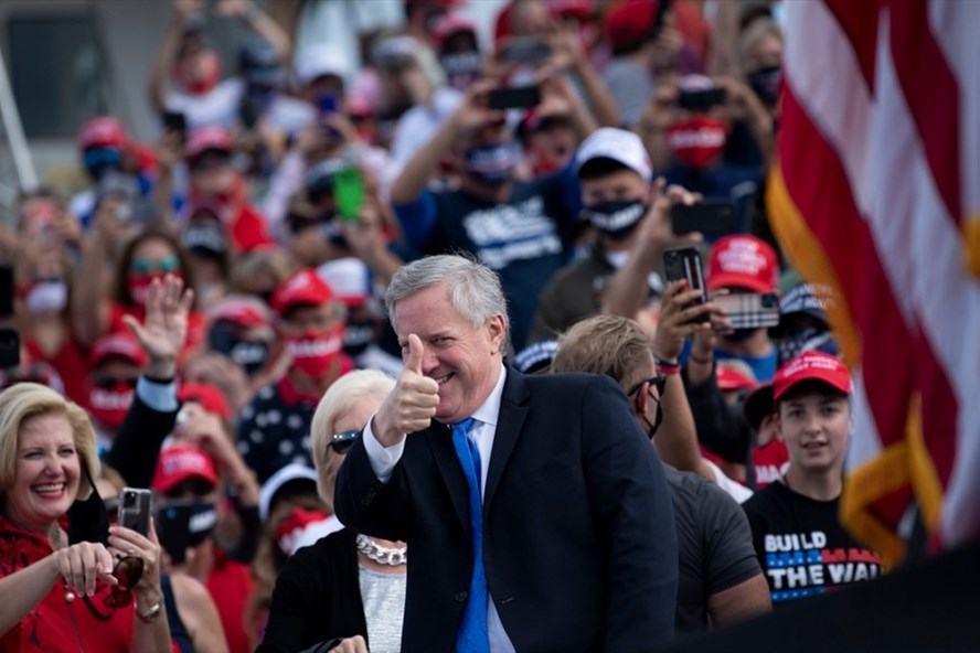 Chánh văn phòng Nhà Trắng Mark Meadows dự cuộc vận động tranh cử của Tổng thống Donald Trump hôm 15.10.2020 tại Greenville, Bắc Carolina. Theo truyền thông Mỹ, nhân viên Nhà Trắng sẽ là nhóm được tiêm vaccine COVID-19 sớm.