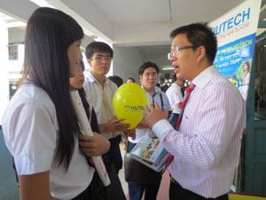 Đại diện Trường ĐH Công nghệ TP.HCM tư vấn ngành nghề cho học sinh Trường THPT Sương Nguyệt Anh (TP.HCM)
