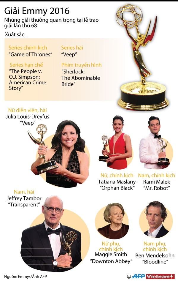 "Game of Thrones" đã bước lên đài vinh quang, với chiến thắng ở hạng mục quan trọng nhất, "Phim truyền hình chính kịch xuất sắc nhất."