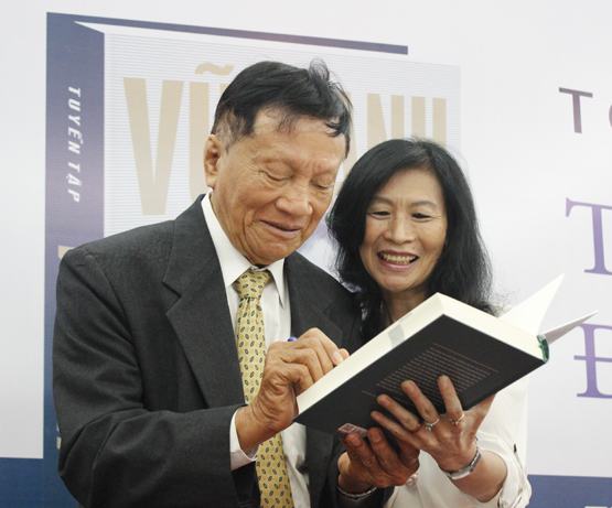 | Nhà văn Vũ Hạnh ký tặng sách cho một độc giả |
