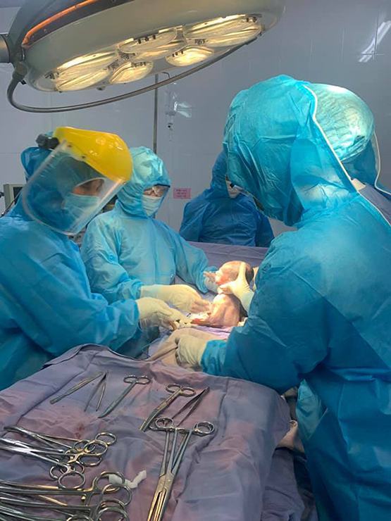 Các y bác sĩ Trung tâm Y tế Q.Sơn Trà mổ bắt con cho sản phụ N.Đ.T.L khi khu nhà của chị L. bị phong tỏa