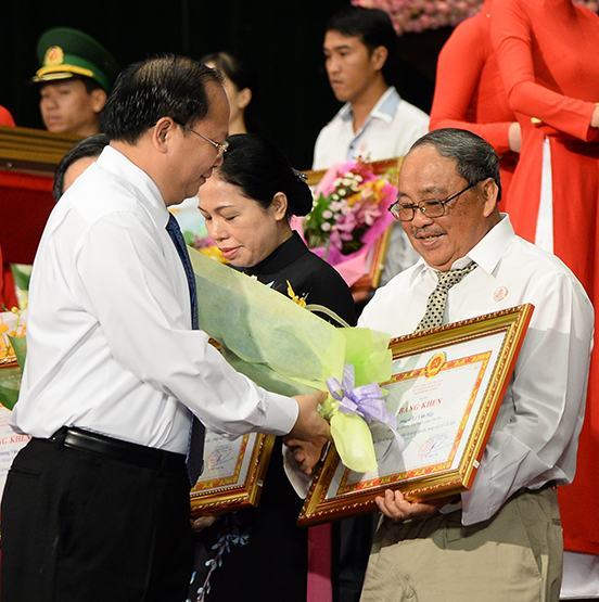 | Lãnh đạo TP trao tặng Bằng khen cho các tập thể và cá nhân tiêu biểu. Ảnh: Q.H |