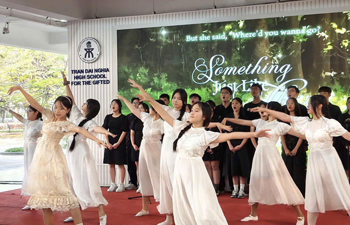 “Các sân chơi này không chỉ dành riêng cho học sinh lớp chuyên Anh mà mở rộng cho học sinh toàn trường. Thực tế cho thấy, học sinh các lớp không chuyên Anh tham gia rất nhiệt tình, hào hứng và bộc lộ nhiều tiềm năng nổi trội. Dù về mặt học thuật có thể không bằng các bạn chuyên Anh, nhưng ở những phần thể hiện kỹ năng khác, các em lại vô cùng xuất sắc”, cô Duyên đánh giá.