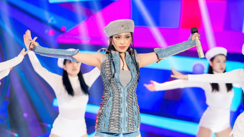 Han Sara trong tiết mục Cô gái gen Z, lấy cảm hứng từ ca khúc Cô gái mở đường