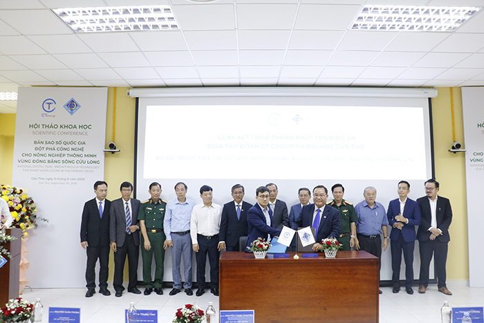 Chiều 9-9-2025, Đại học Cần Thơ phối hợp với Tập đoàn CT Group tổ chức hội thảo khoa học “Bản sao số quốc gia – Đột phá công nghệ cho nông nghiệp thông minh vùng đồng bằng sông Cửu Long”.