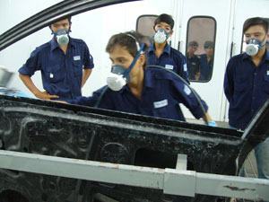 Ngành ô tô không chỉ dành cho nam. Những nữ sinh theo đuổi và học tốt ngành này cũng có nhiều lợi thế khi ra đi làm. Ảnh chụp sinh viên ngành ô tô đang trong giờ thực hành |