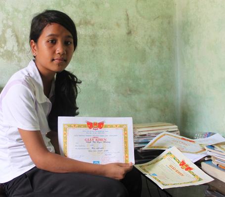Em Đinh Thị Ngọc Nhàng chăm chỉ trong học tập và được tặng nhiều giấy khen.