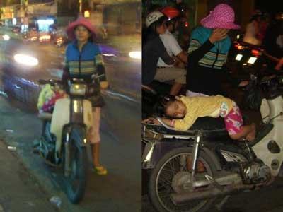 Khoảng 16h ngày 26/3, trên đường Hoàng Văn Thụ (quận Tân Bình – TP HCM), một phụ nữ khoảng 35 tuổi với gương mặt uể oải đẩy xe máy dọc đường, trên yên xe là một bé gái khoảng 4 tuổi nằm sõng soài.