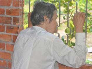| Ông Chính nhìn ra khung cửa sổ từ “phòng giam“. |