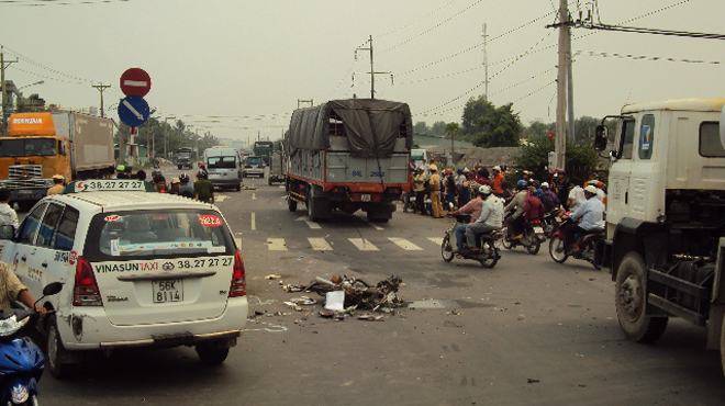 Khoảng 12g ngày 13-6, tại chốt đèn tín hiệu giao thông trước Khu công nghiệp Tân Hương trên quốc lộ 1A thuộc huyện Châu Thành (Tiền Giang) xảy ra vụ tai nạn giao thông làm chết hai người.