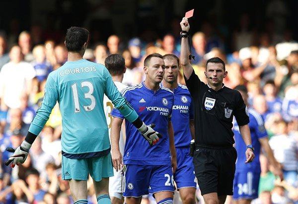 Trong trận đấu với Swansea, thủ môn Thibaut Courtois đã phải nhận thẻ đỏ trực tiếp khi trọng tài xác định anh phạm lỗi với Gomis.
