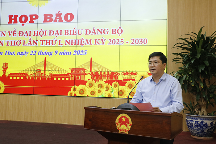 Chiều ngày 22-9-2025, Thành ủy Cần Thơ tổ chức họp báo thông tin về kế hoạch tổ chức Đại hội đại biểu Đảng bộ TP.Cần Thơ lần thứ I, nhiệm kỳ 2025-2030.