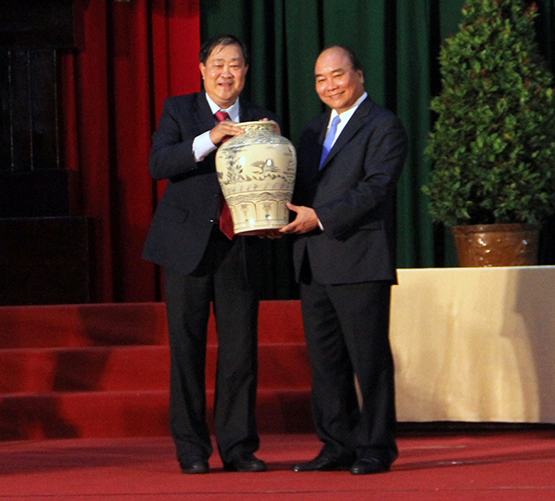 Thủ tướng tặng quà lưu niệm cho đại diện trường ĐH Cần Thơ