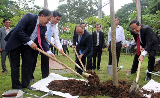 Thủ tướng Nguyễn Xuân Phúc và lãnh đạo trường ĐH/Cần Thô trồng cây lưu niệm tại trường