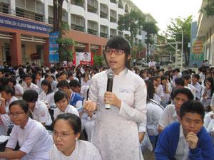 Học sinh Trường THPT Trần Hưng Đạo (TP.HCM) đặt câu hỏi trong chương trình tư vấn tuyển sinh 2013 do Báo Giáo Dục TP.HCM tổ chức