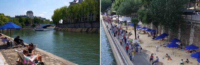 Từ năm 2002 đến nay, cứ đến mùa hè là các con đường dọc bờ sông Seine, khu vực trung tâm Paris, lại biến thành những bãi biển nhân tạo. Ảnh: GETTY IMAGES