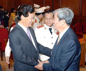 Tới dự buổi gặp mặt có Ủy viên Bộ Chính trị, Thủ tướng Chính phủ Nguyễn Tấn Dũng; đồng chí Lê Hồng Anh, Ủy viên Bộ Chính trị, Thường trực Ban Bí thư; lãnh đạo một số bộ, ngành Trung ương.