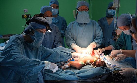 7 giờ 30 ngày 2-10, ê-kíp gồm các chuyên gia, BS tại BV Nhi đồng 1 TP.HCM đã thực hiện thành công ca phẫu thuật tách dính cho cặp song sinh nữ 1,5 tháng tuổi bị dị tật dính liền nhau.