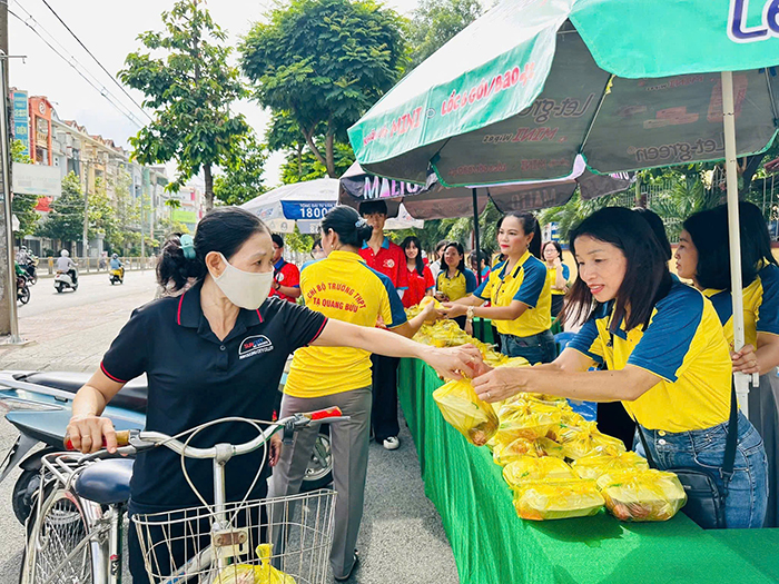 Cô phấn khởi: Đã thành thông lệ, cán bộ quản lý, giáo viên, nhân viên, phụ huynh, học sinh nhà trường đều chủ động đóng góp, ủng hộ các vật dụng gia đình không còn dùng đến nhưng vẫn còn sử dụng được gửi đến cho phiên chợ như quần áo, giày dép, đồ chơi, sách, tập… Bên cạnh đó thầy trò, phụ huynh học sinh của trường còn đóng góp thêm nhu yếu phẩm cần thiết góp trong phiên chợ để gửi đến bà con khó khăn trên địa bàn phường. Đặc biệt là đều đặn chung tay nấu những phần đồ ăn gửi đến bà con.