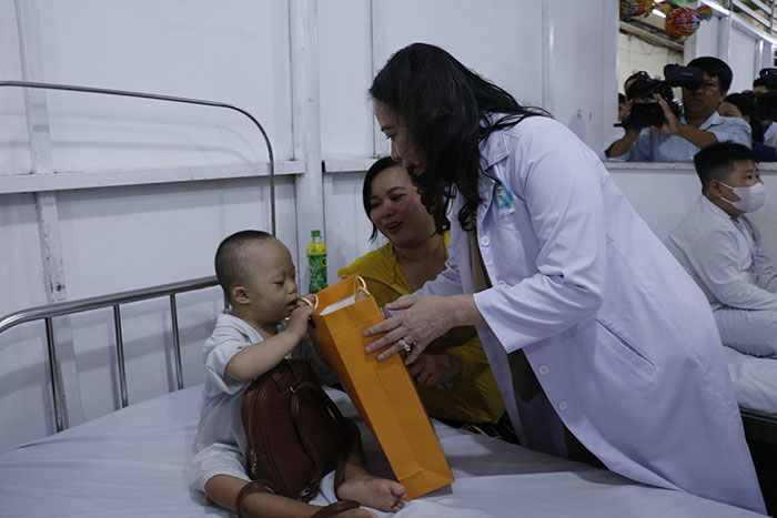 Tại BVUB, chứng kiến nghị lực của các em nhỏ đang cố gắng chống chọi với các bệnh nan y, Phó Chủ tịch nước xúc động sâu sắc và ân cần thăm hỏi sức khỏe, động viên tinh thần các bệnh nhi cùng gia đình các cháu; và tặng quà cho 30 bệnh nhi. Mỗi suất quà gồm 4 triệu đồng tiền mặt và 1 túi bánh kẹo.