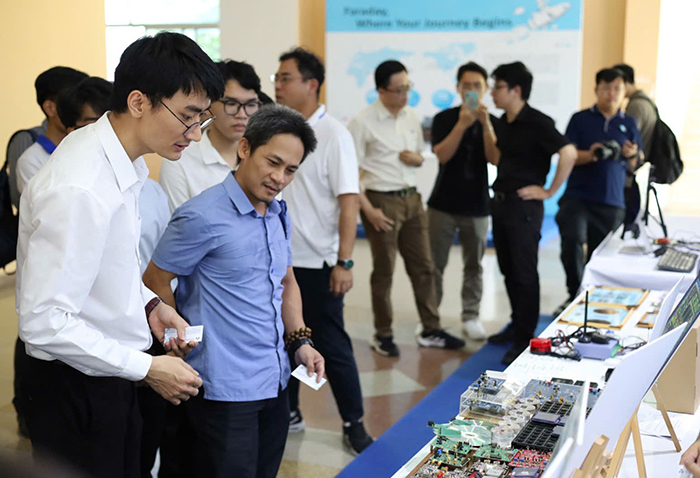 Các đại biểu tham quan triển lãm sản phẩm vi mạch bán dẫn của ĐH Quốc gia TP.HCM trong khuôn khổ hội thảo