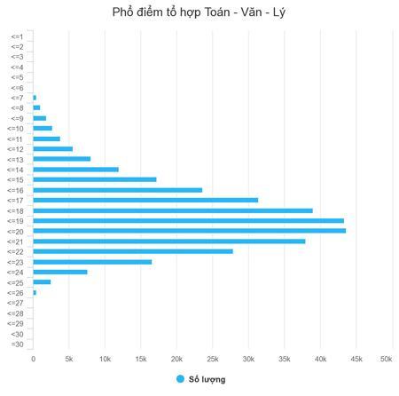 Các số liệu do Bộ Giáo dục và Đào tạo cung cấp. Phụ huynh và học sinh di chuột hoặc chạm (nếu dùng mobile) vào các thanh trong từng biểu đồ để biết số lượng thí sinh ở từng mức điểm.