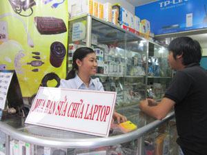 Chú trọng đến chất lượng, chế độ bảo hành… là phương thức mà nhiều cửa hàng ở phố máy tính đẩy mạnh để thu hút khách (hình chụp tại cửa hàng máy tính Thái Tú)